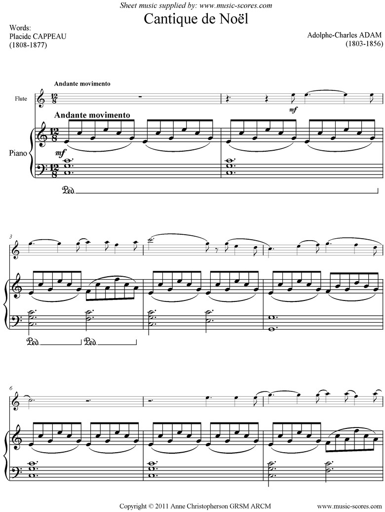 O Holy Night, or Cantique de Noel. Flute, Piano.