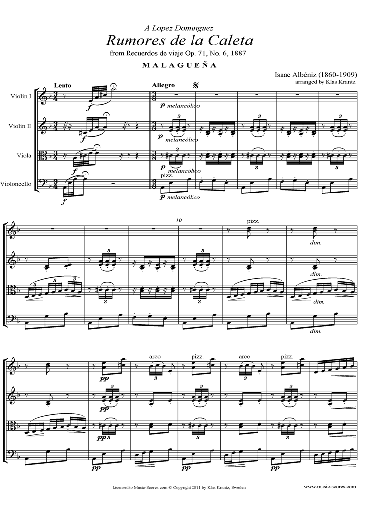 Malaguena Op.71, No.6 String Quartet