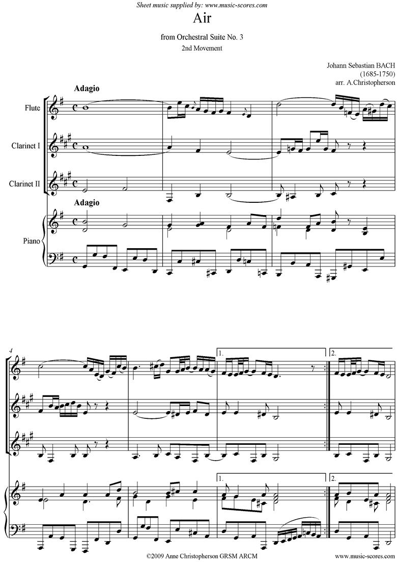 bwv 1068 Air on G Clarinet, Flute and Piano