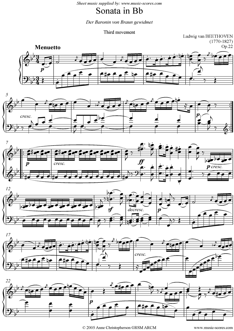 Op.22 Sonata 11 Bb 3rd Mt Minuetto and Minore