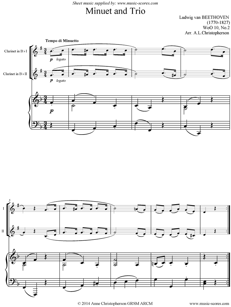 WoO 10, No.2 Minuet and Trio 2 Clarinets