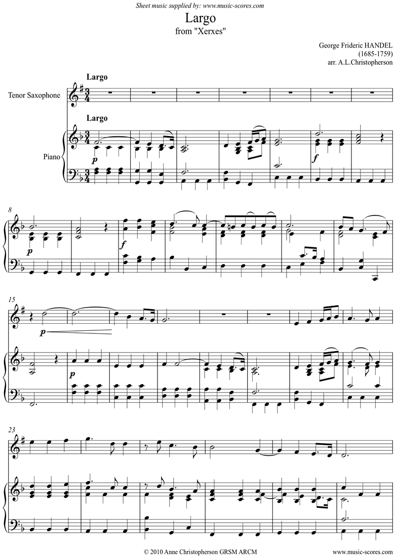 Xerxes Largo Flute, Clarinet, Alto Sax, Trumpet